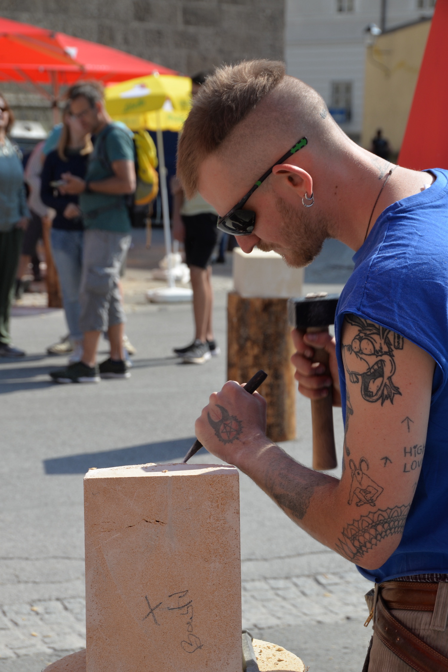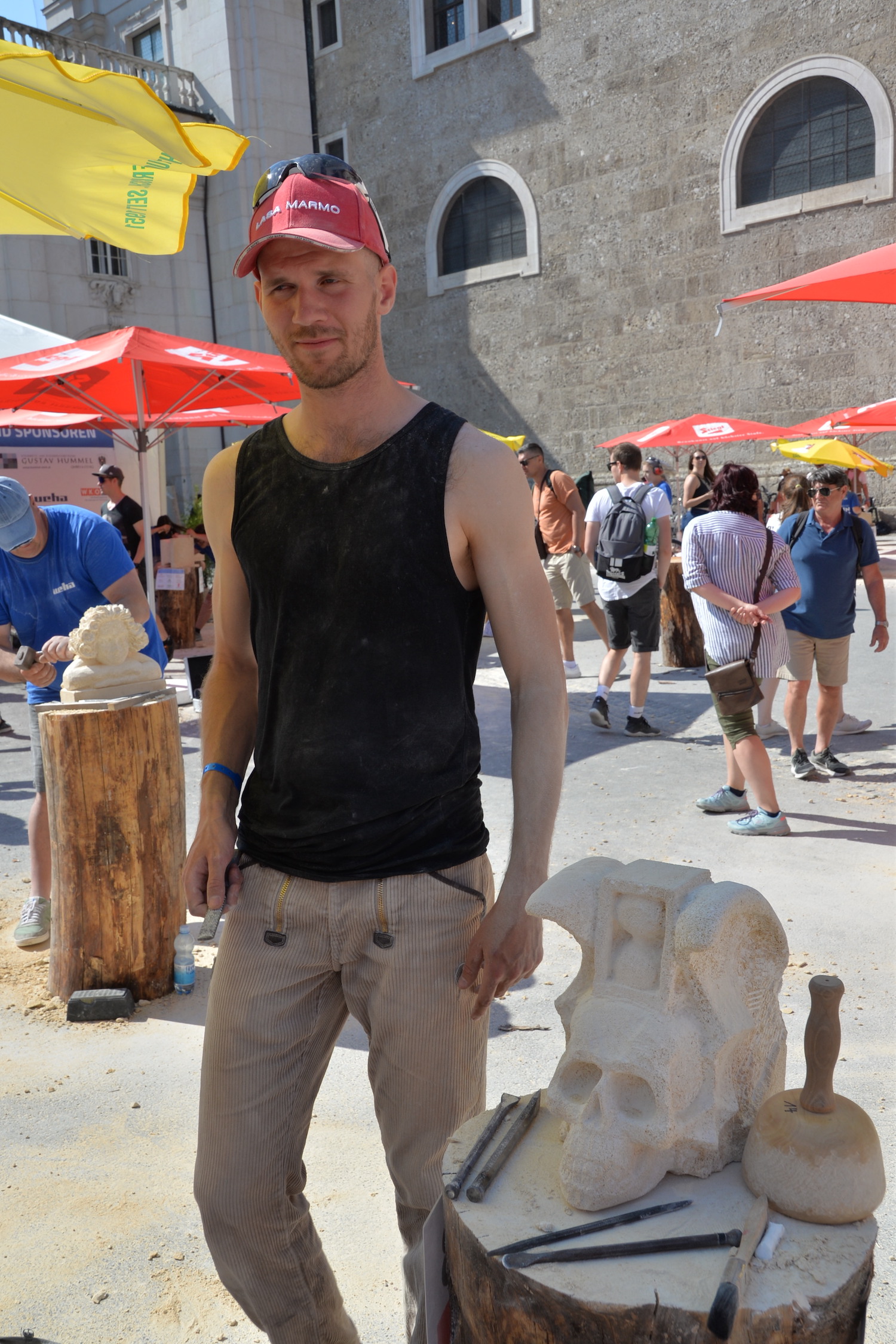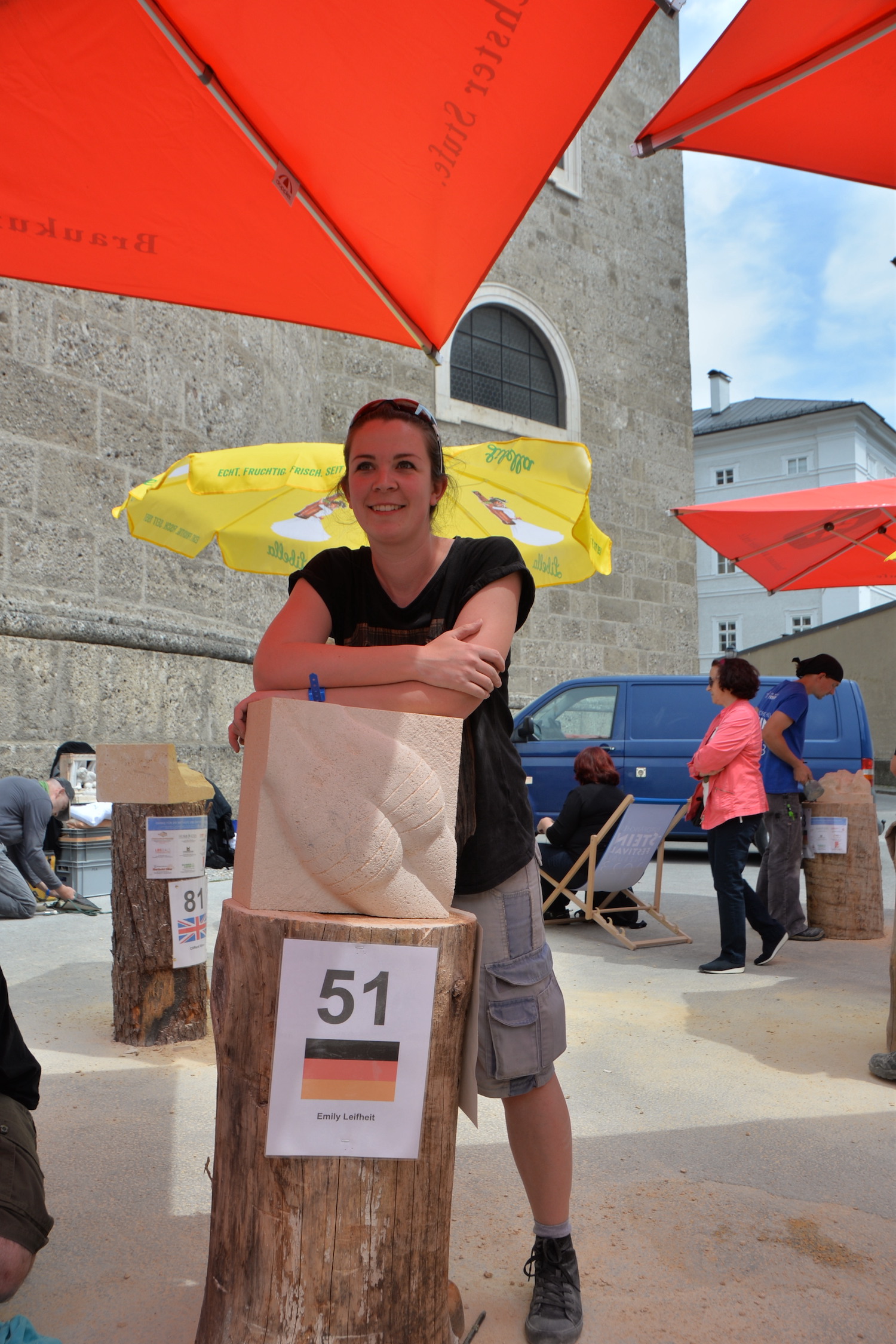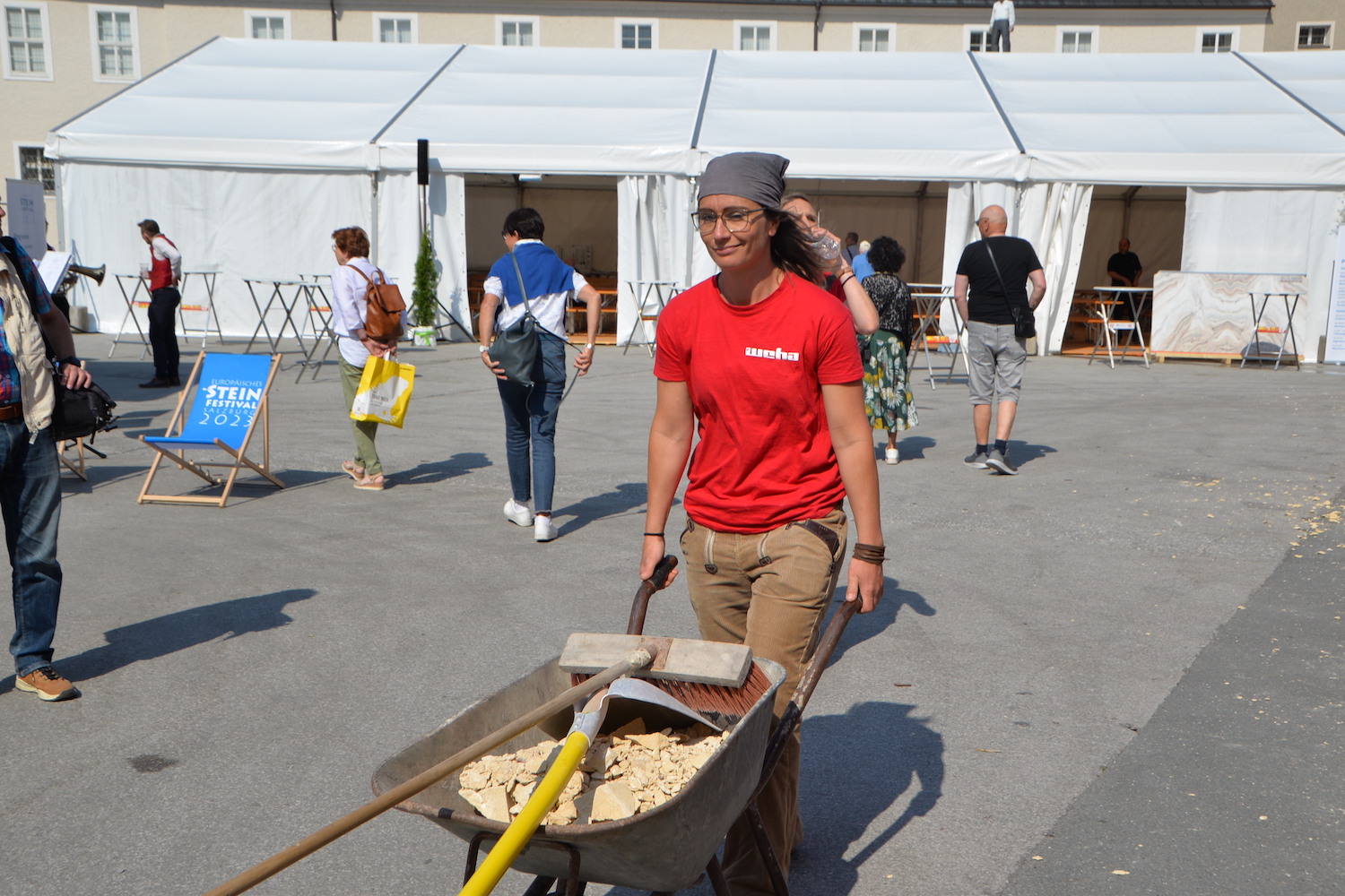 Am 03. und 04. Juni 2023 stand der Kapitelplatz in Salzburg ganz im Zeichen der Steinmetz-Kunst. Rund 110 Teilnehmende aus 12 verschiedenen Nationen demonstrierten live vor Ort ihr Können. Zahlreiche Besucher blickten begeistert den internationalen Steinmetzen und Bildhauern dabei über die Schulter, während diese im Wettbewerb ihre Skulpturen zum Thema „103 Jahre Salzburger Festspiele“ aus St. Margarethener Kalksandstein meißelten. Auch die Fachschule für Steintechnik und Steingestaltung der HTL Hallein feierte mit einer Präsentation von Designprojekten ihr 125-jähriges Bestehen im Zuge des Steinfestivals und stellte ihre Ausbildungsschwerpunkte vor. Beeindruckend war der Klang von über hundert hämmernden und meißelnden Steinmetzen im Herzen der Salzburger Altstadt.