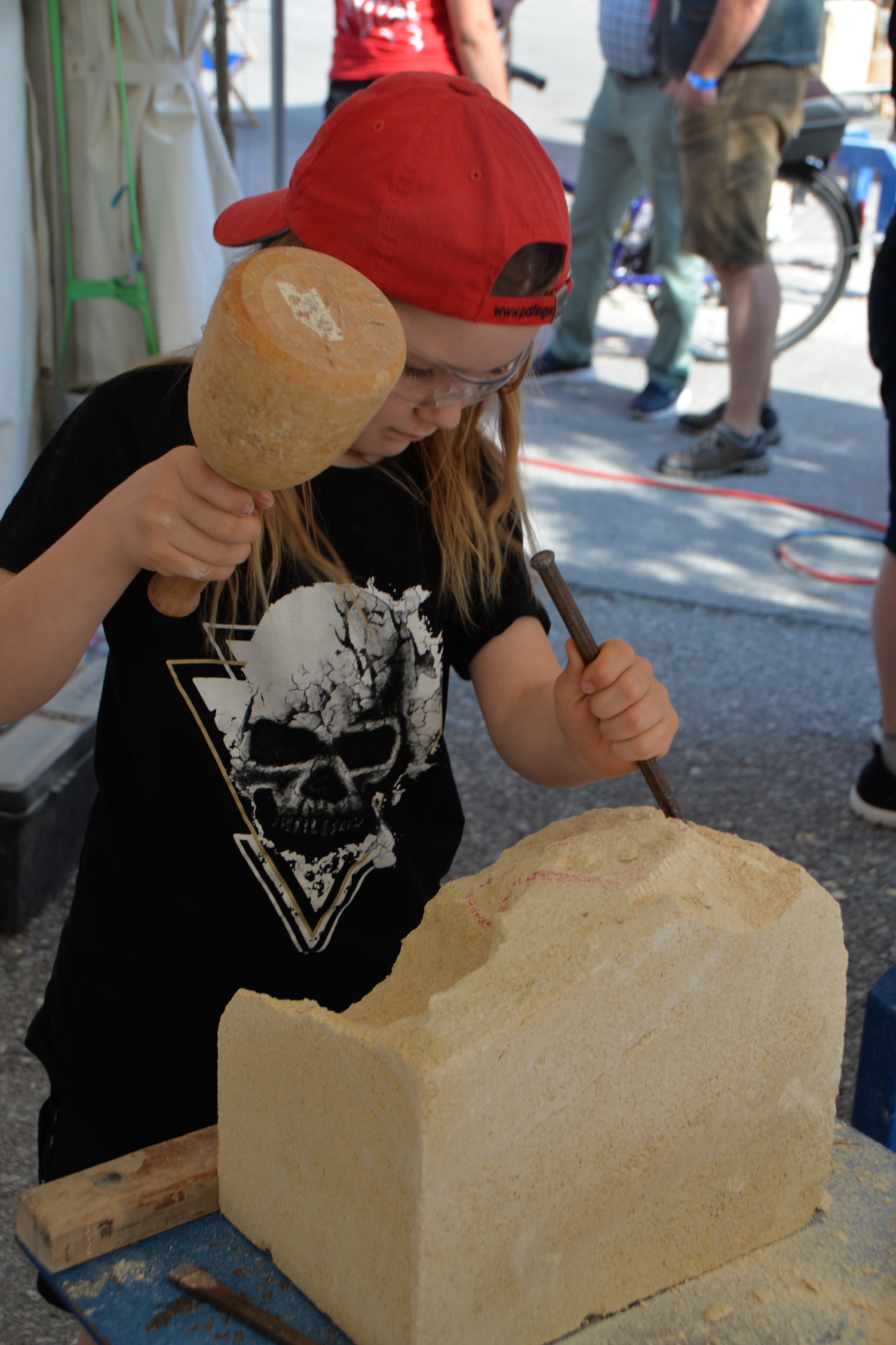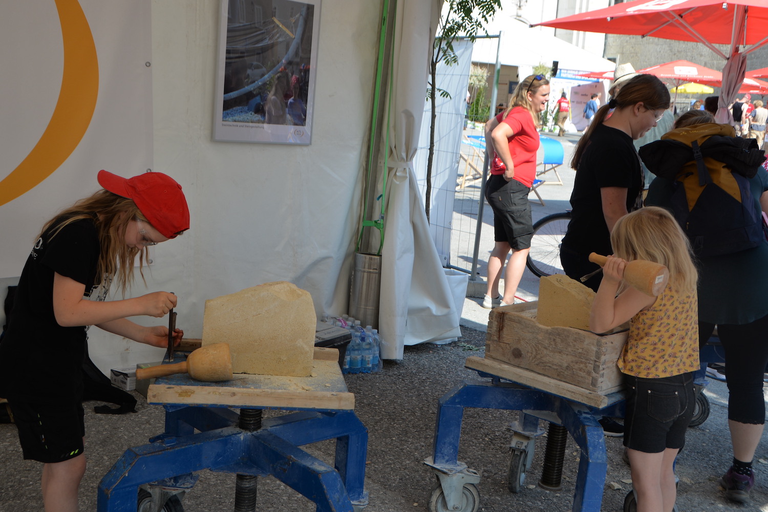 Während die Steinmetze eifrig an ihren Werkstücken arbeiteten, gab es für Besucher des Steinfestivals noch mehr zu erleben. Eine lebende Werkstätte und eine Mitmach-Station bei der man sich selbst als Steinmetz versuchen konnte fand vor allem bei den jüngsten Besuchern großen Anklang. Auch die Ausstellung der Design-Objekte der HTL Hallein wurde viel bestaunt. Im Festzelt wartete nicht nur Verpflegung auf die Gäste, sondern es wurde abends auch Livemusik mit der „Band Exit 207“ geboten und viele nutzen die Chance auf ein gemütliches Beisammensein.