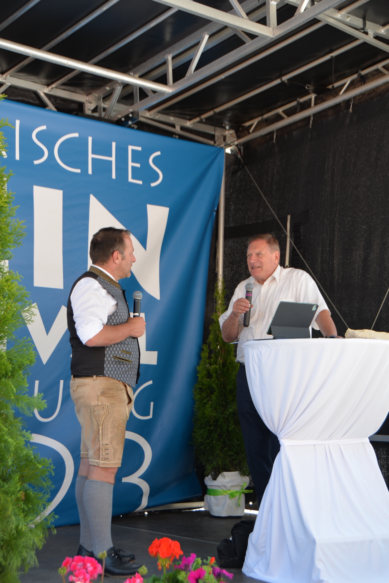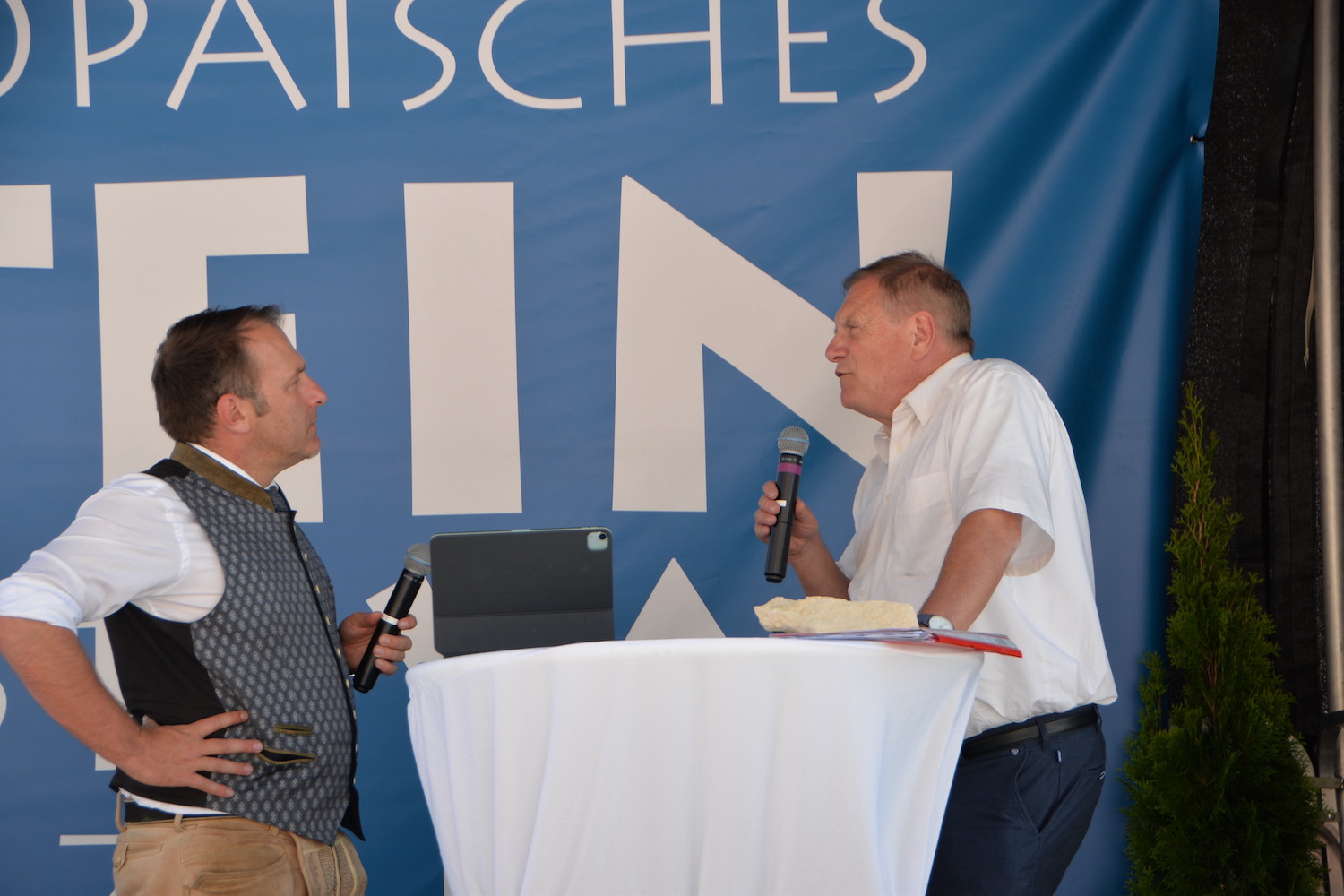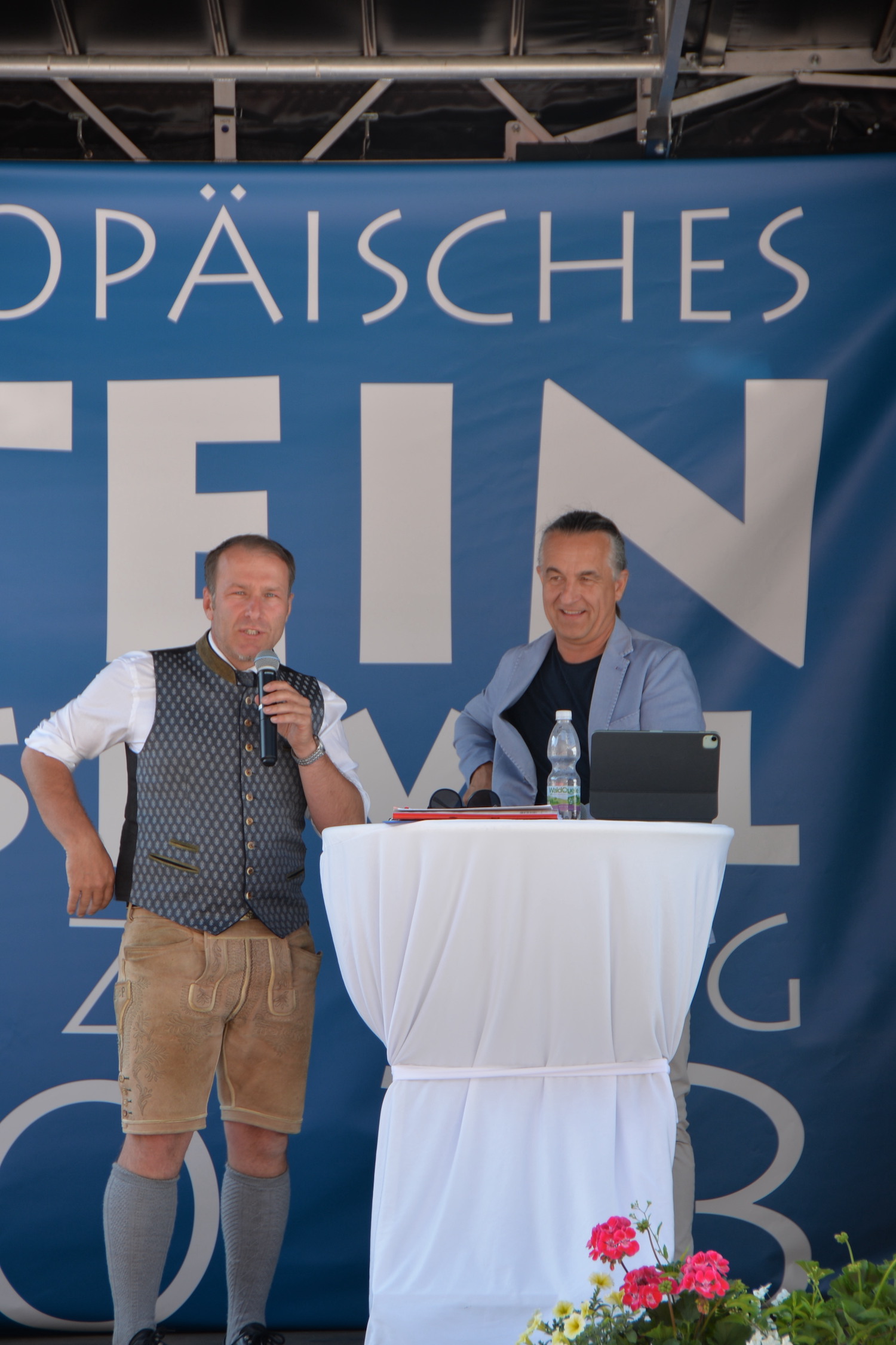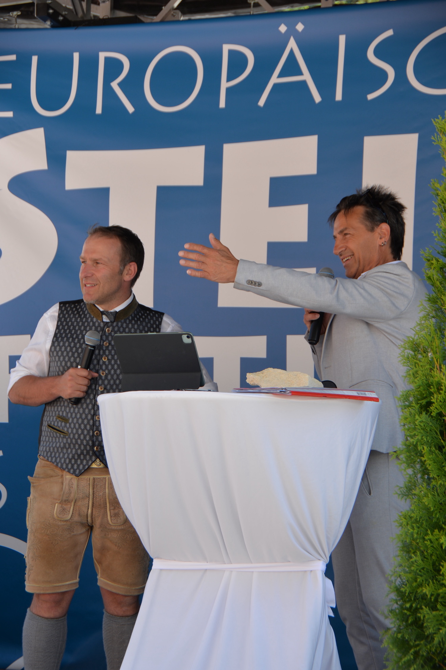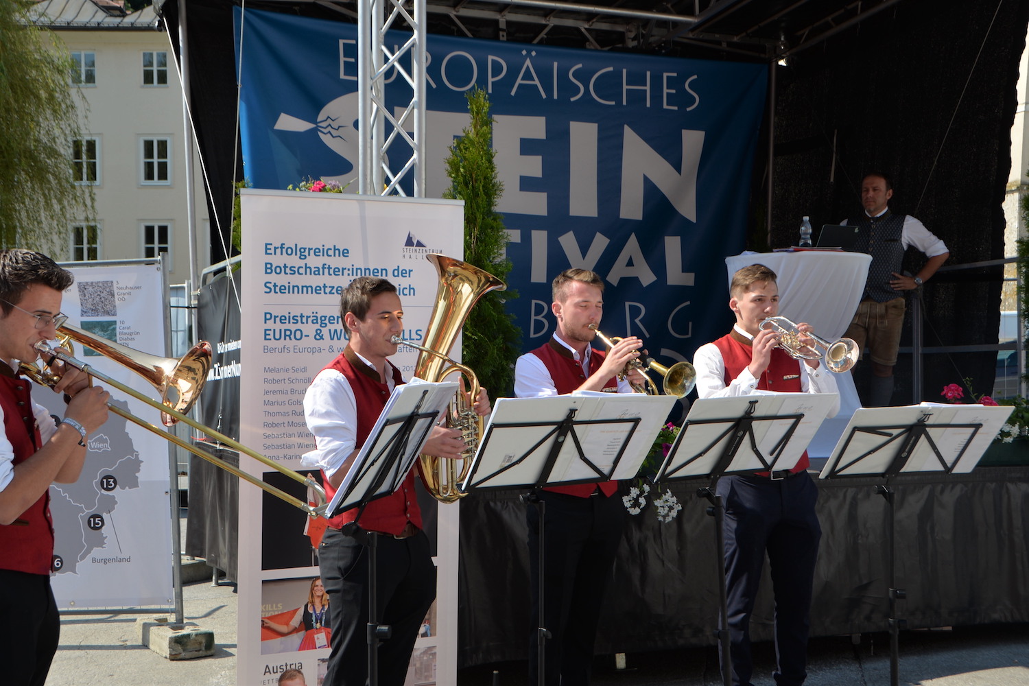Im Rahmen einer feierlichen Eröffnung durfte der Moderator Georg Pollak mehrere Festredner auf der Bühne des Steinfestivals begrüßen. Dr. Elisabeth Kandler-Mayr, Ordinariatskanzlerin der Erzdiözese Salzburg ging auf die Verflechtung und Tradition von Naturstein und Kultur in Salzburg ein und Landesrätin Mag. Daniela Gutschi freute sich über das „Klingen des Steins im so steinreichen Salzburg“. Norbert Kienesberger, Bundesinnungsmeister-Stv. der Steinmetze Österreichs richtete Grußworte an alle nationalen und internationalen Gäste des Festivals und Veranstaltungs-Initiator Helmut Moser hatte schließlich die Ehre allen Teilnehmer ein zünftiges „Glück auf!“ zu wünschen.