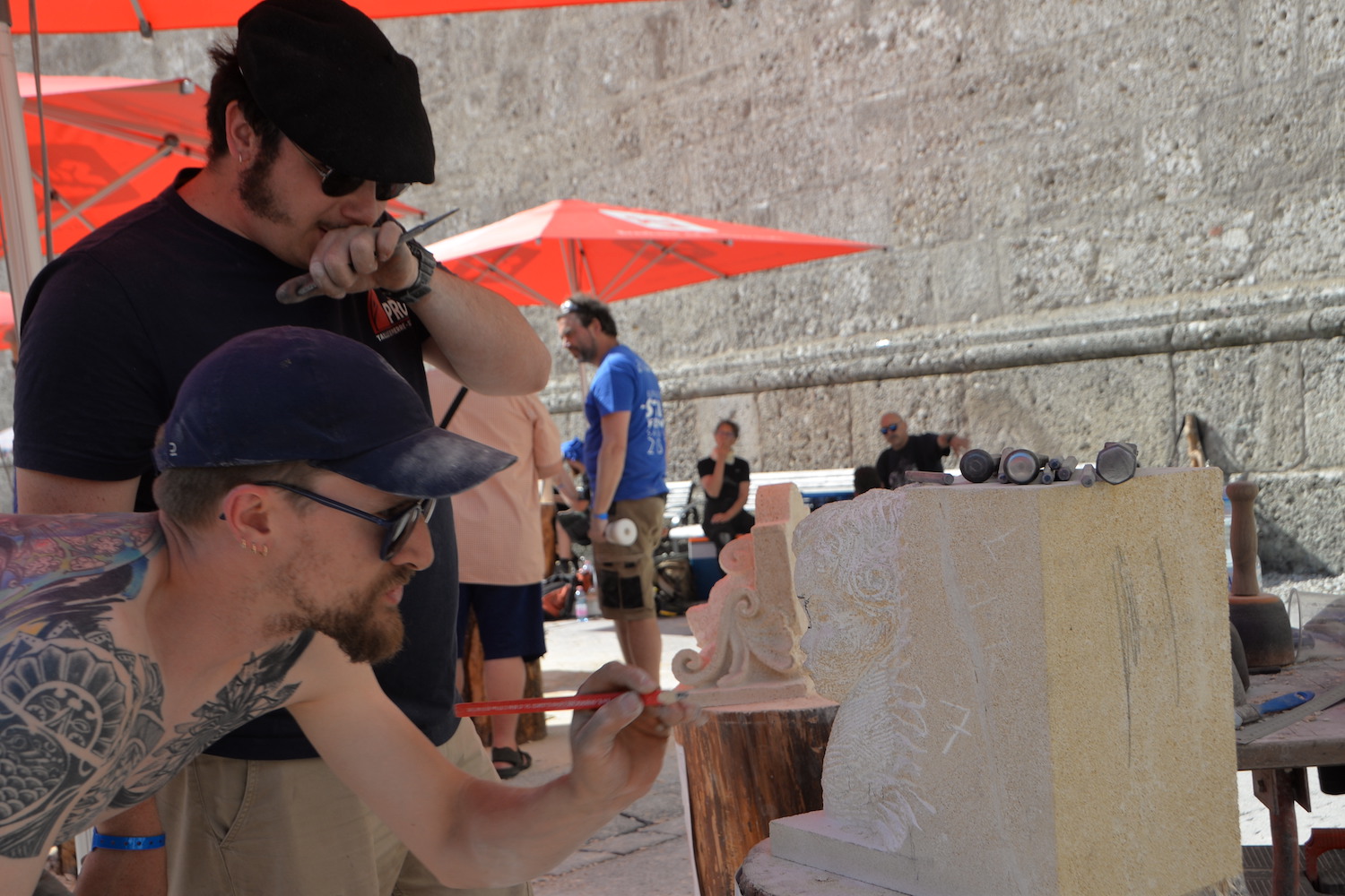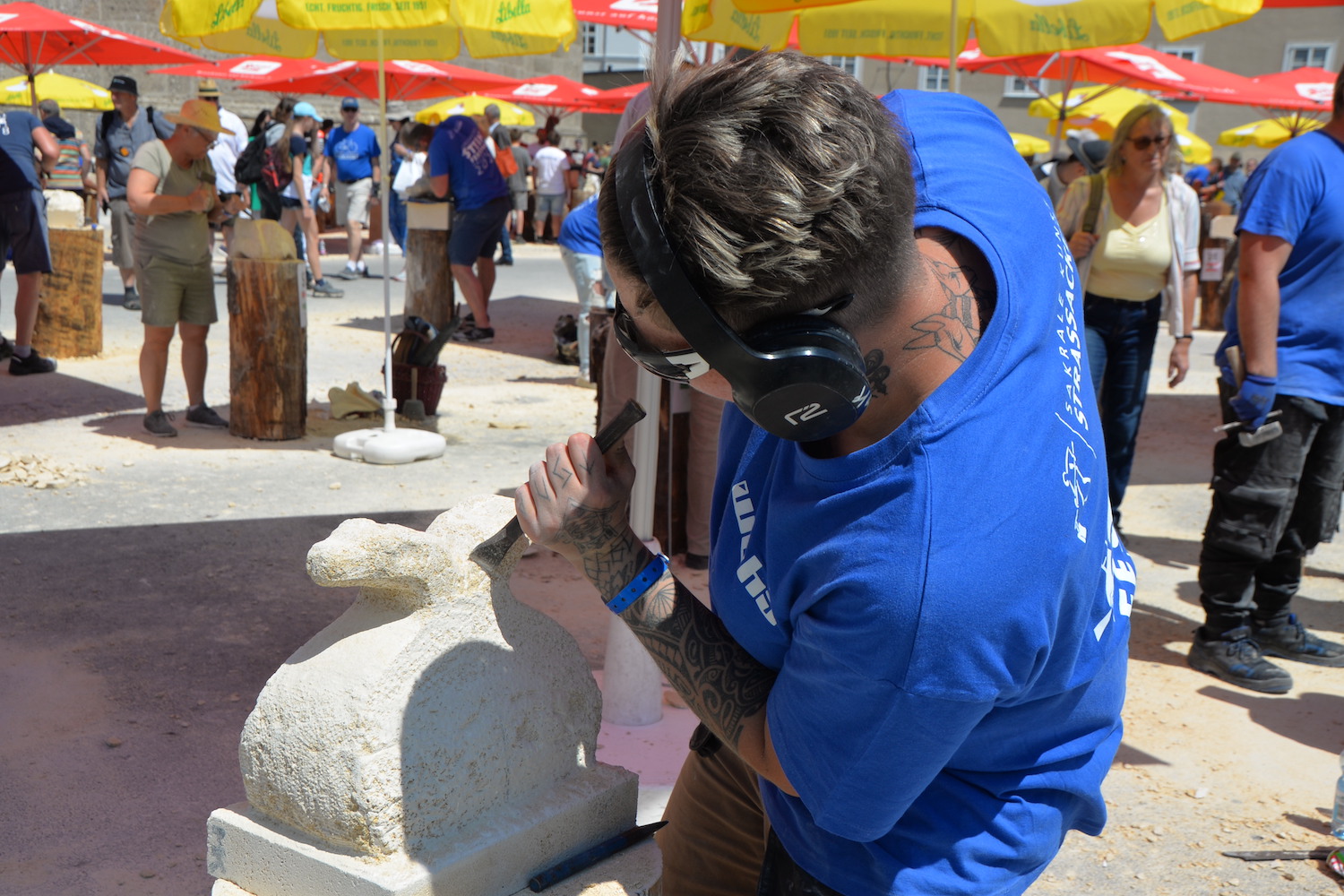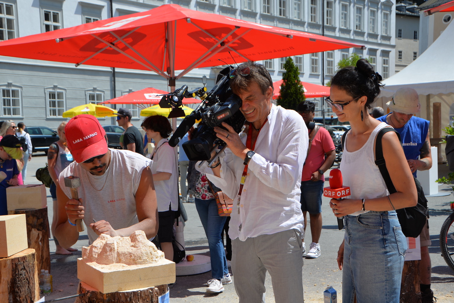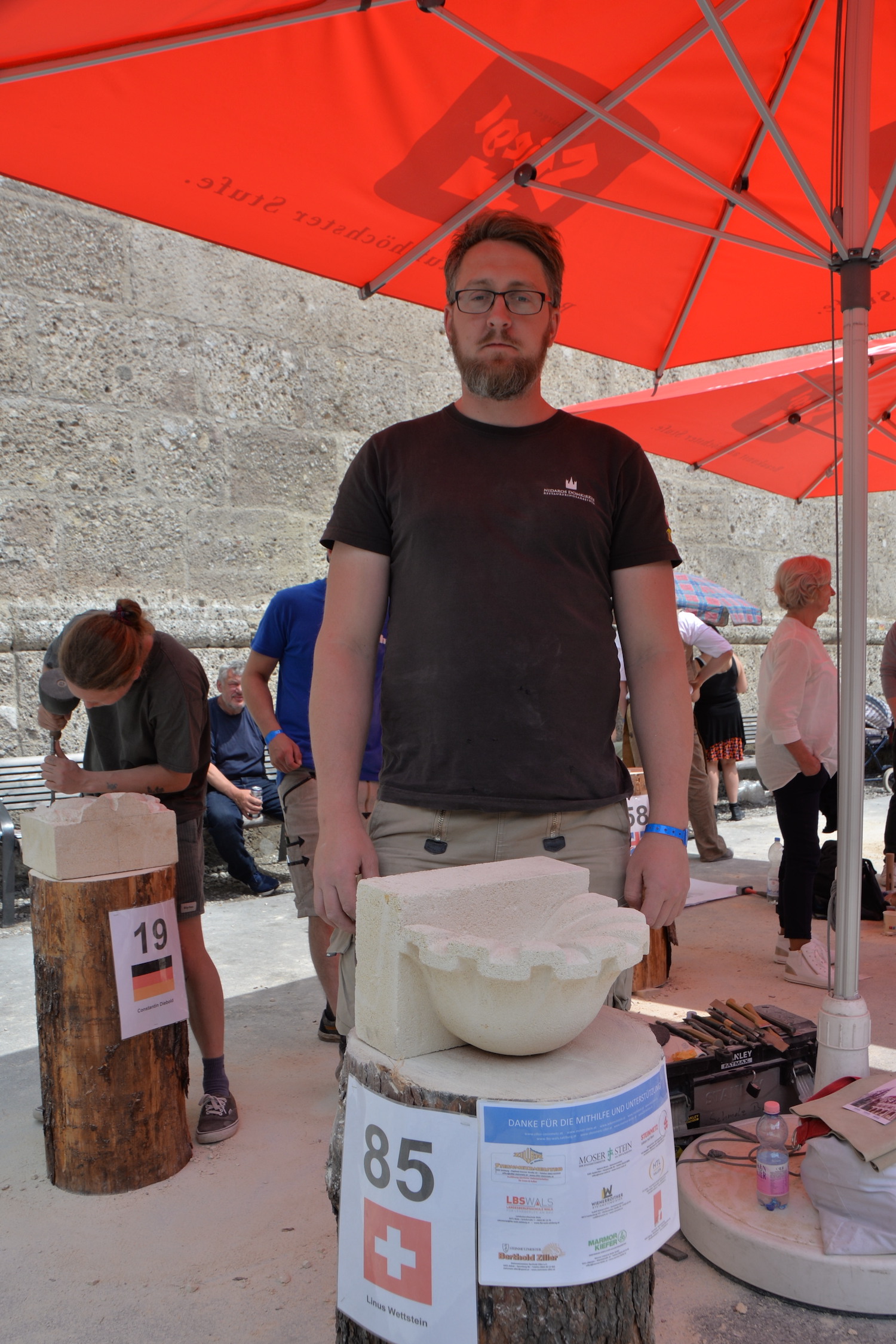 Beim Europäischen Steinfestival 2023 reisten die Teilnehmer aus ganz Österreich, Deutschland, England, Schweiz, Italien, Frankreich und Ungarn an. Sogar Steinmetze aus Kanada und Peru ließen es sich nicht nehmen in ihrer Freizeit dabei zu sein und ihren Beruf in Salzburg gemeinsam zu feiern. Dank des hohen Gemeinschaftssinns in der internationalen Steinmetz-Community, dem wunderbar sonnigen Wetter und sehr vielen Besucher war die Stimmung am Kapitelplatz in Salzburg ausgezeichnet.