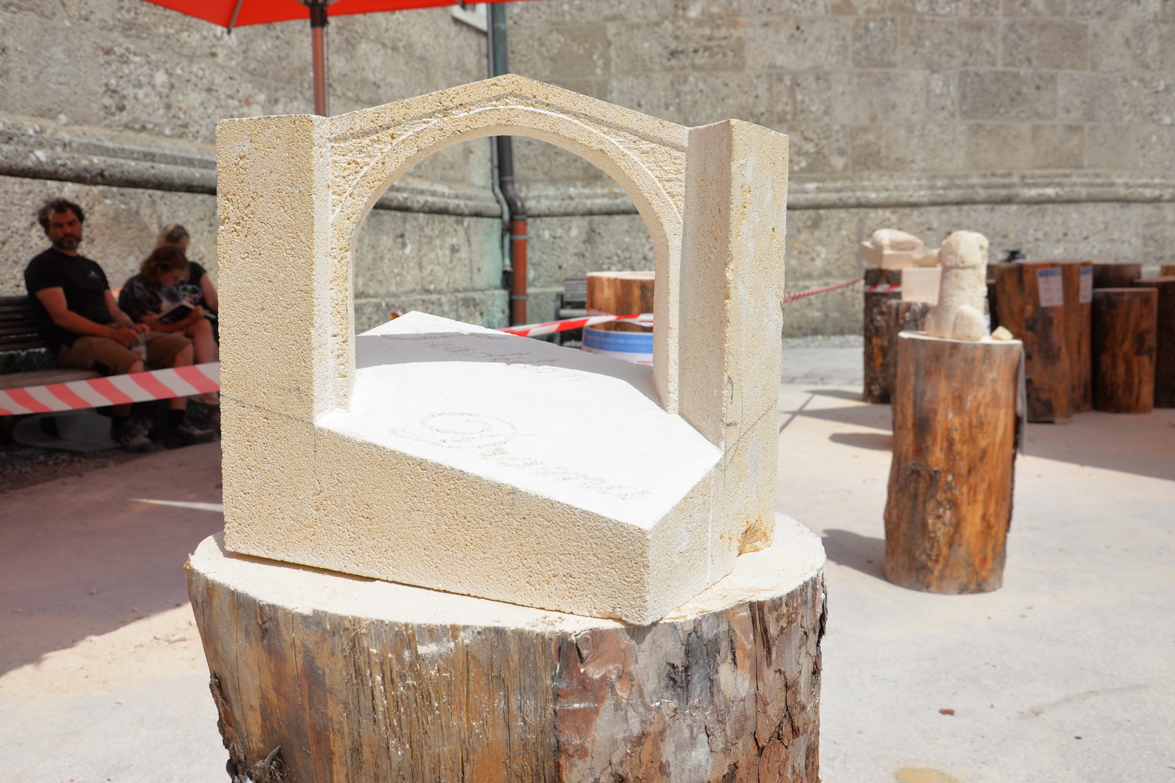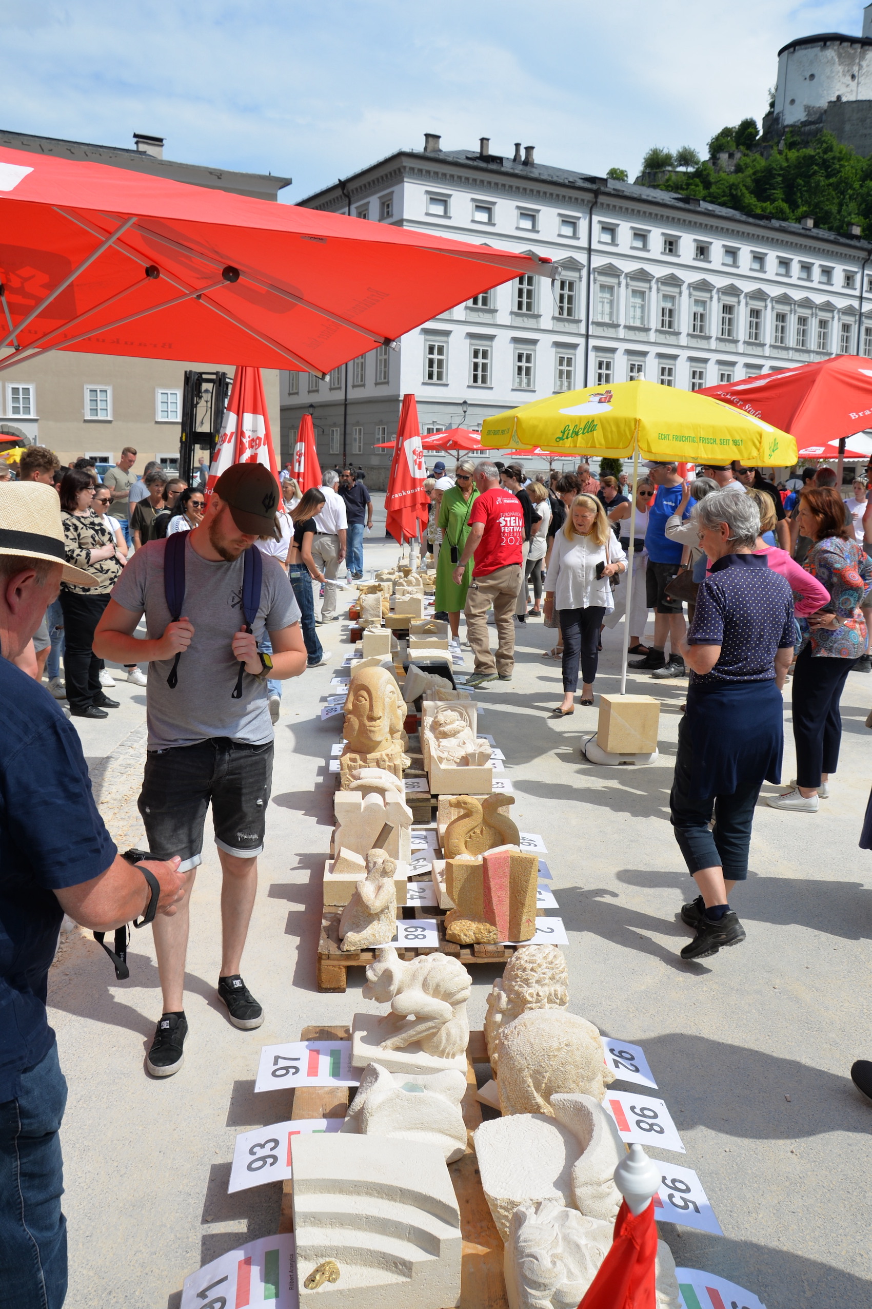 Am 03. und 04. Juni 2023 stand der Kapitelplatz in Salzburg ganz im Zeichen der Steinmetz-Kunst. Rund 110 Teilnehmende aus 12 verschiedenen Nationen demonstrierten live vor Ort ihr Können. Zahlreiche Besucher blickten begeistert den internationalen Steinmetzen und Bildhauern dabei über die Schulter, während diese im Wettbewerb ihre Skulpturen zum Thema „103 Jahre Salzburger Festspiele“ aus St. Margarethener Kalksandstein meißelten. Auch die Fachschule für Steintechnik und Steingestaltung der HTL Hallein feierte mit einer Präsentation von Designprojekten ihr 125-jähriges Bestehen im Zuge des Steinfestivals und stellte ihre Ausbildungsschwerpunkte vor. Beeindruckend war der Klang von über hundert hämmernden und meißelnden Steinmetzen im Herzen der Salzburger Altstadt.